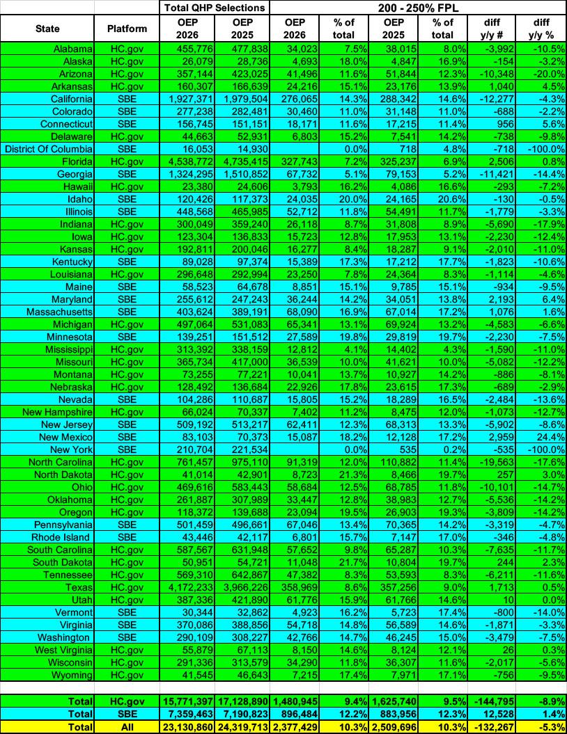 - First, they were the least-impacted by the enhanced subsidies expiring (most of them still saw their premiums jump dramatically, just not as dramatically as those below 200% FPL or over 400% FPL)