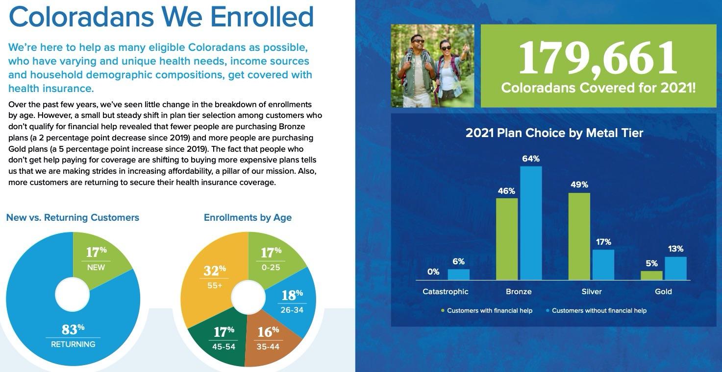 “I’m so pleased by the response we’ve seen to keeping our doors open and knowing that more Coloradans have access to health care this year,” said Chief Executive Officer Kevin Patterson. “I continue to remind people who need coverage to sign up now. We have experts ready to help you and your family navigate your health coverage options.”