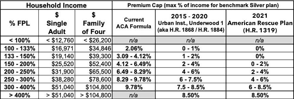 Remember, here's side by side comparisons of the official ACA APTC subsidy table, how it would have been upgraded under H.R. 1868 (last year) and how it has actually been upgraded under H.R. 1319 (the American Rescue Plan):