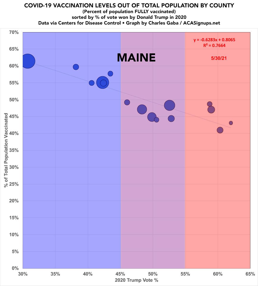Maine: #COVID19 vaccination rates by county & partisan lean