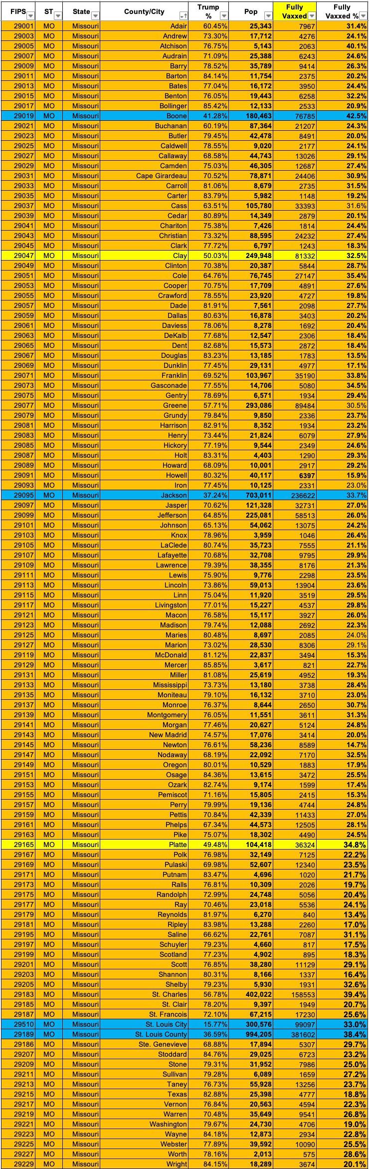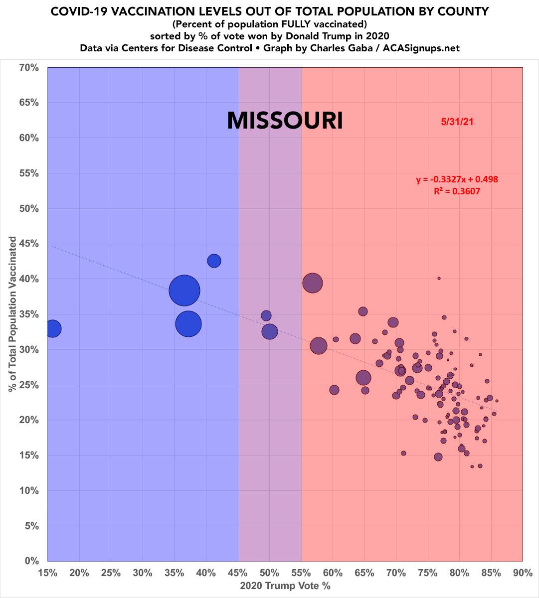 Missouri: #COVID19 vaccination rates by county & partisan lean