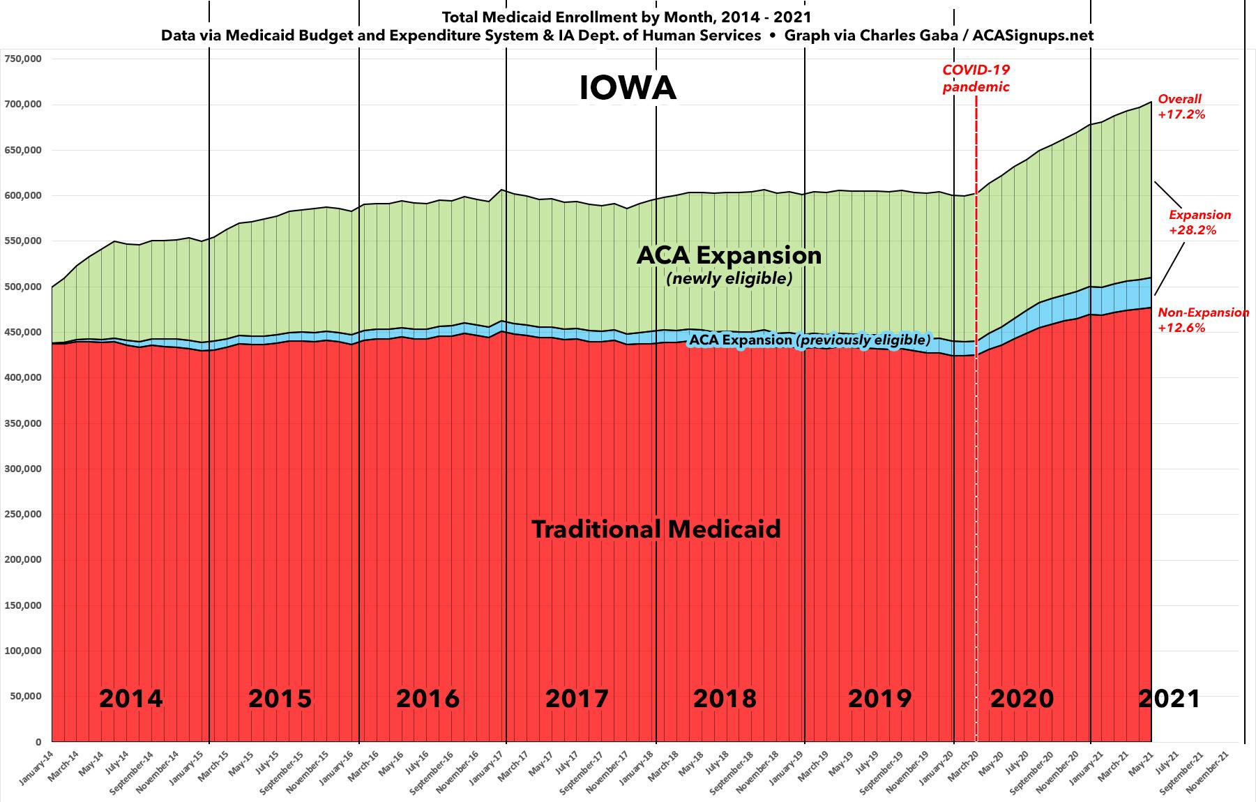 Iowa: Medicaid expansion enrollment up 28% since COVID hit; total Medicaid up 17%