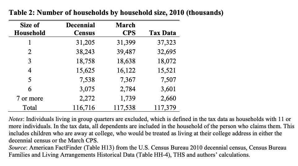 When you break all three estimates out, they come out pretty close to each other: A little over 2.5 people per household including tax filings: