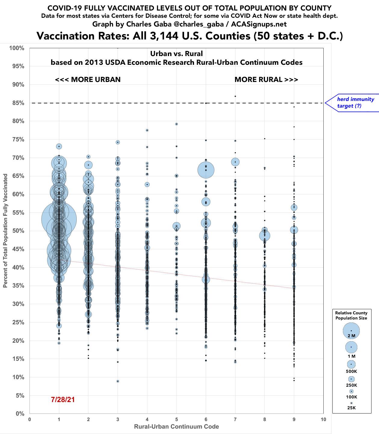 6. Nonmetro (567 counties): 19.3 million people, 41.2% fully vaxxed