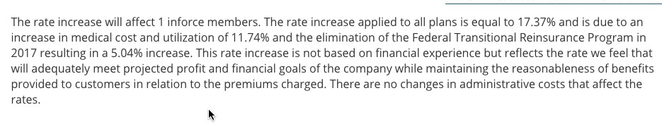 All told, that's at least 11 states, with a grand total of 11 enrollees. 7 out of 11 states are asking for exactly 17.37% hikes. In every case, the actual Actuarial Memorandum is Redacted.