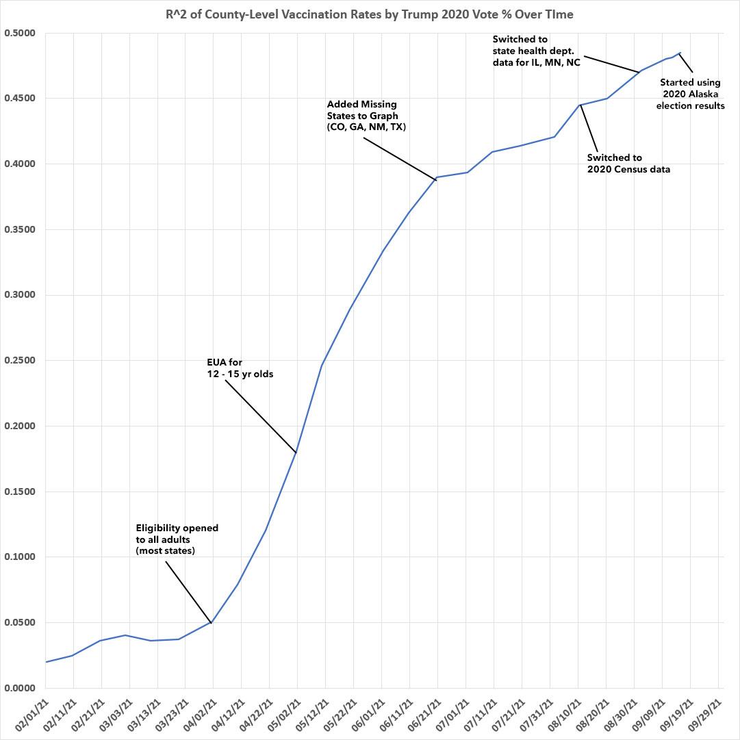 Weekly Update: U.S. #COVID19 vaccination levels by COUNTY & Partisan Lean