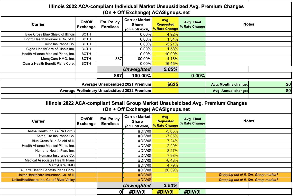 Illinois: Preliminary avg. 2022 #ACA rate changes (unweighted): +5.1% indy mkt; +3.5% sm. group