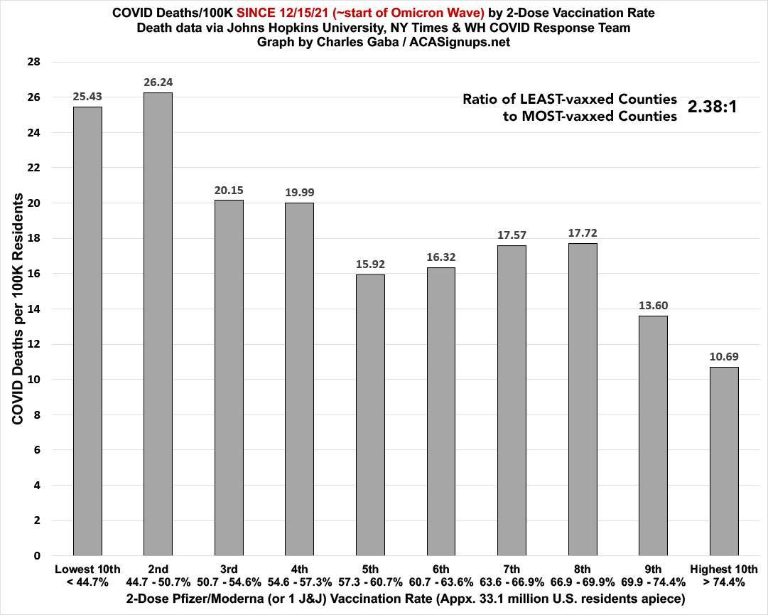 - Delta wave DEATH rates: 4.77x higher in the least-vaccinated decile than the most-vaccinated decile