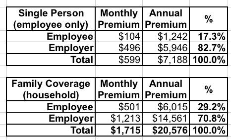 Anyway, most employers cover the bulk of the premiums for their enrollees...but a lot of people (my guess is the vast majority) either have no clue that they do so or at best have no idea how much of their monthly premiums are covered for them by the employer.