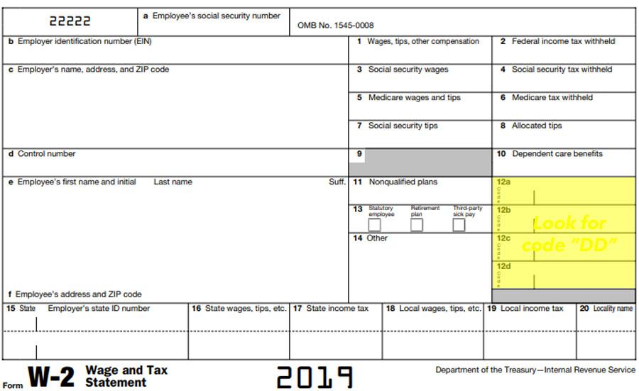 Individuals and Families: Individuals (employees) do not have to report the cost of coverage under an employer-sponsored group health plan that may be shown on their Form W-2, Wage and Tax Statement, in Box 12, using Code DD.