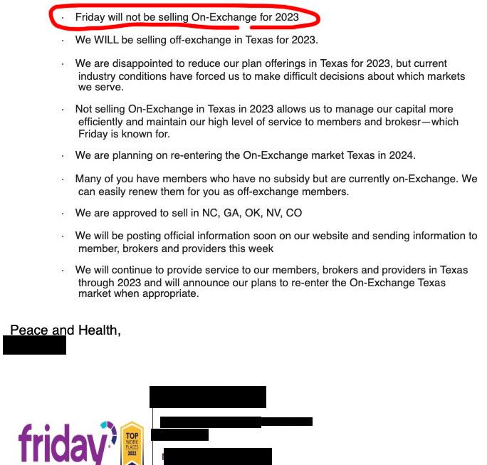 TX Marketplace Rumor Mill: Friday Health Plans is OUT for 2023. @LouiseNorris @charles_gaba @bjdickmayhew