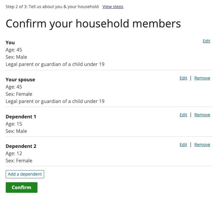 Stop right there. "Middle-aged" is generally considered to be somewhere between 40 - 55 years old, so let's go with 45. They have two children under 19 on their plan (the Op-Ed later refers to the same children being eligible for CHIP under a different scenario); let's figure the kids are, say, 15 and 12.