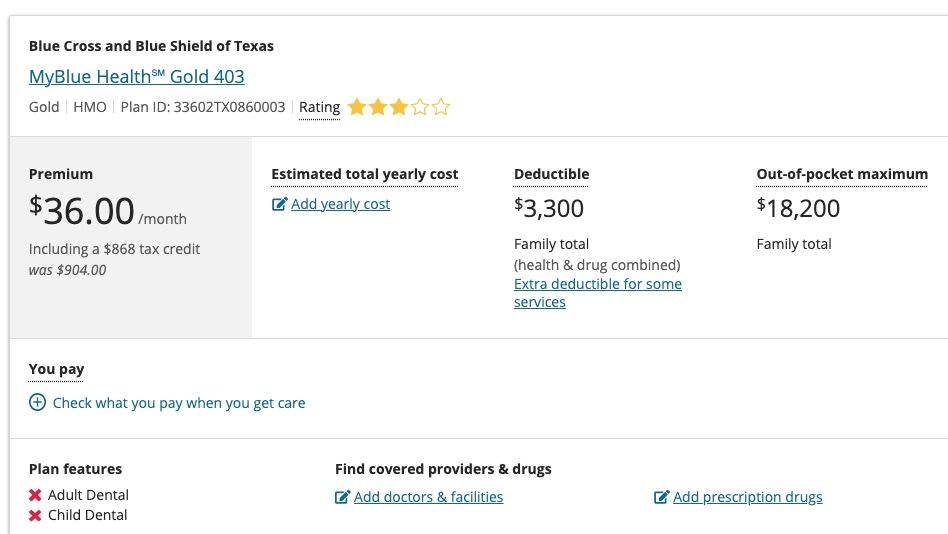 The thing is, this Bronze plan would be a terrible choice for them anyway. They'd be much better off choosing the Gold BCBSTX plan: