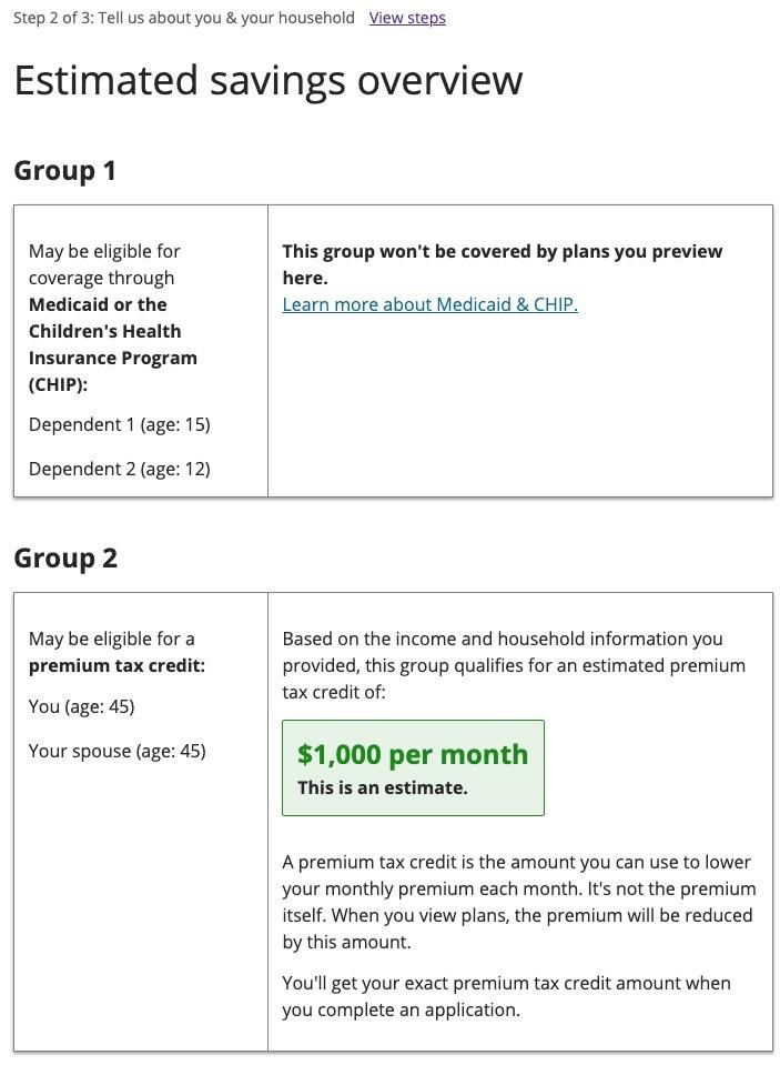 Having said that, at $30,000/year (100% FPL), the children would be eligible for Medicaid, while the parents would receive $1,000/mo in APTC subsidies (ACA subsidy eligibility begins at 100% FPL, so they'd just make the cut).