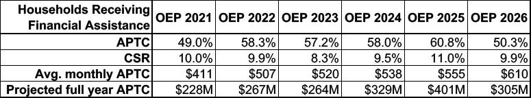 • Peak effectuated enrollments dropped by nearly 11,000 between 2025 and 2026 due to federal policy changes like the end of enhanced tax credits.