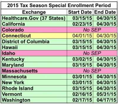 Now that the King v. Burwell Supreme Court oral arguments are out of the way (with radio silence expected until they announce the decision sometime in June) , the next Big Development to keep an eye on ACA-wise is...Tax Season! There will be plenty of stories about how many people have to pay back some/all of their 2014 tax credits, how many will receive additional tax credits...and, most germane to this site, how many additional people enroll via the exchanges to avoid having to pay (most) of the higher tax penalty next year for not being covered in 2015 during the Tax Filing Season Special Enrollment Period (SEP), or #ACATaxTime as I prefer to call it.