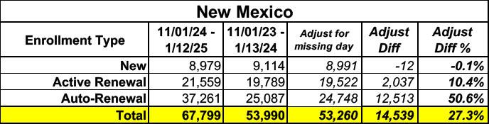 Not only is New Mexico's exchange enrollment up a whopping 28% vs. the same point last year, it's 20% higher than the 2024 OEP's final total of 56,472.