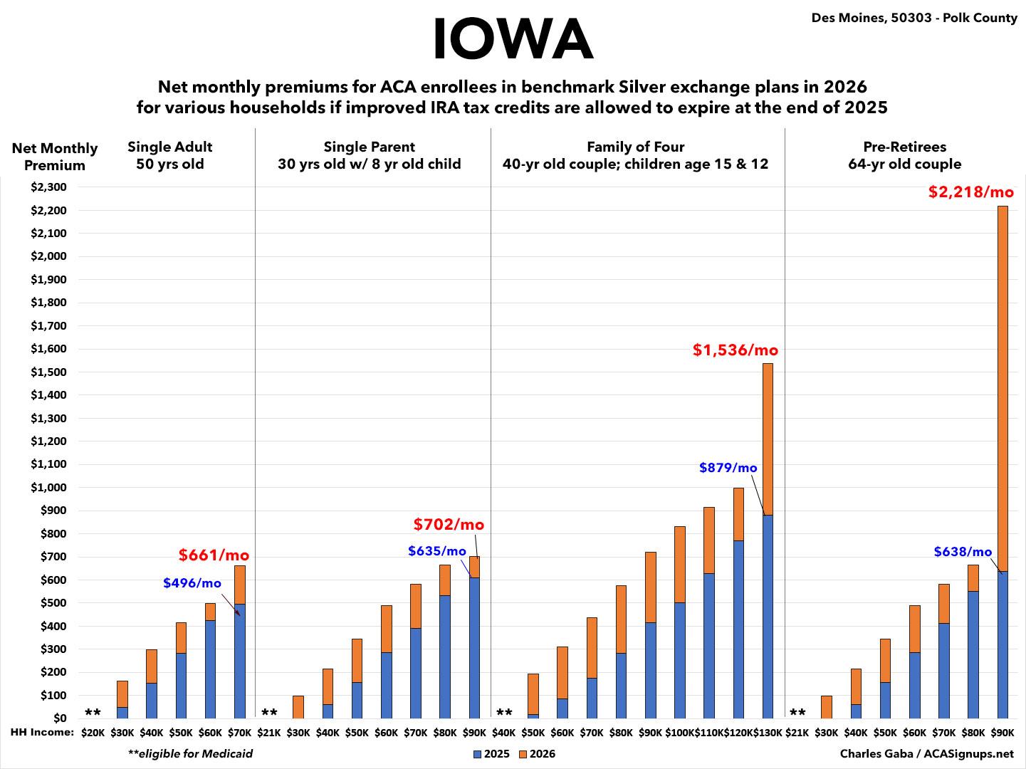 How much more will ~130,000 IOWA residents pay if the improved #ACA subsidies expire? (updated)
