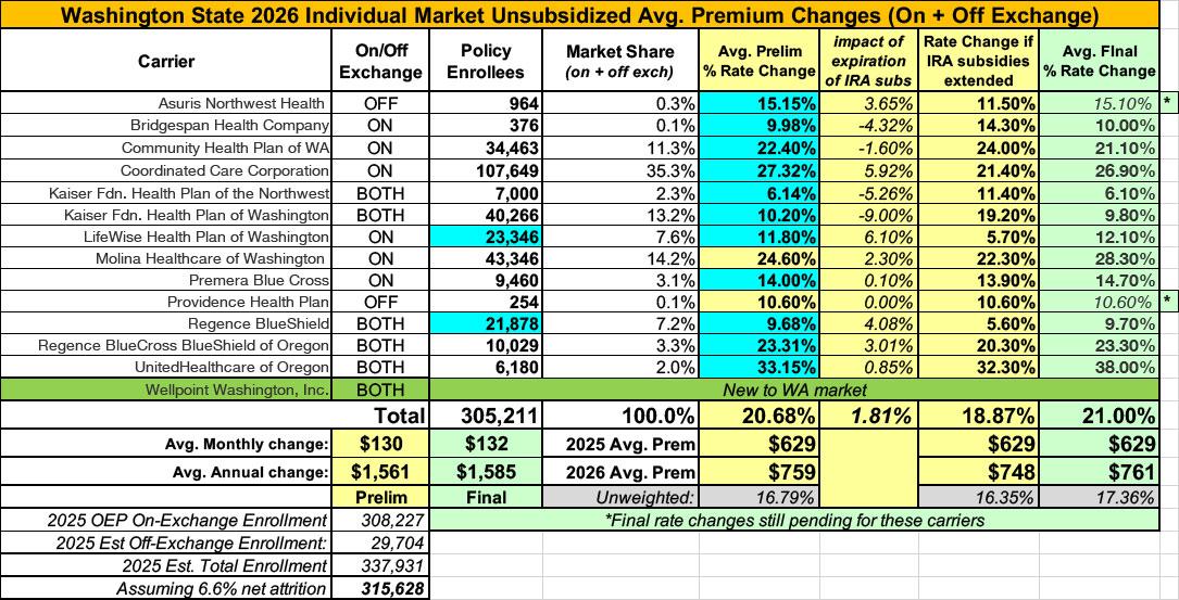 Note: Like several other states, Washington has their own state-based supplemental subsidy program; I'm not sure how that will be impacted going into 2026 and beyond given the federal subsidy cuts.