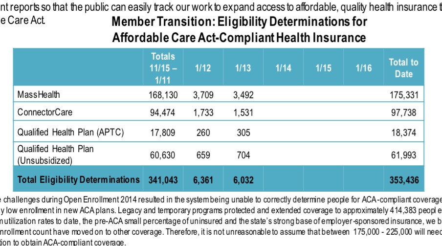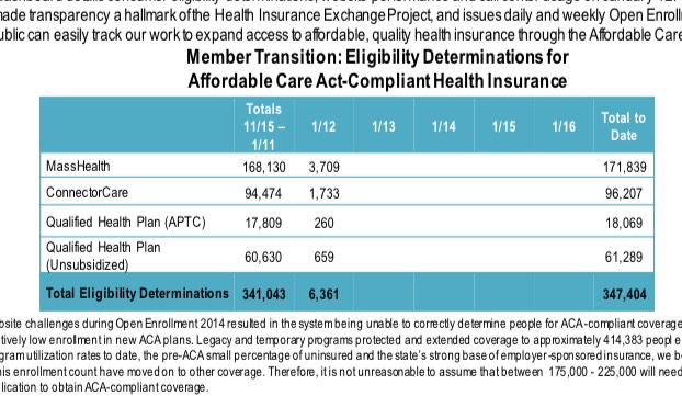 Massachusetts continues to set the example (are you paying attention, CoveredCA??), releasing near-daily enrollment reports and regular weekly reports with hard numbers on QHP enrollments every week (including payment data, I should note):