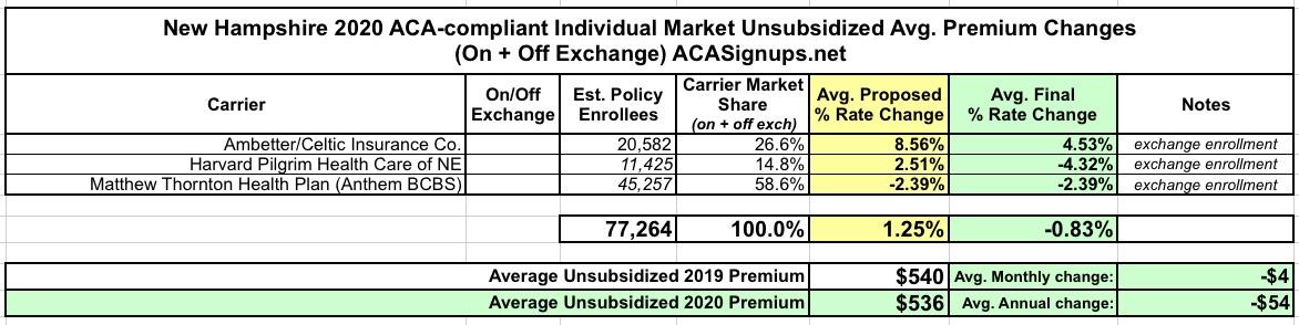 In other words, I've had a pretty good track record of accurately projecting average premium increases for the upcoming year for four years in a row. With that in mind, below you'll find a table tracking the state-by-state preliminary and final rate changes for the 2020 ACA-compliant individual (and sometimes small group) markets. Scroll down for individual state entry links.