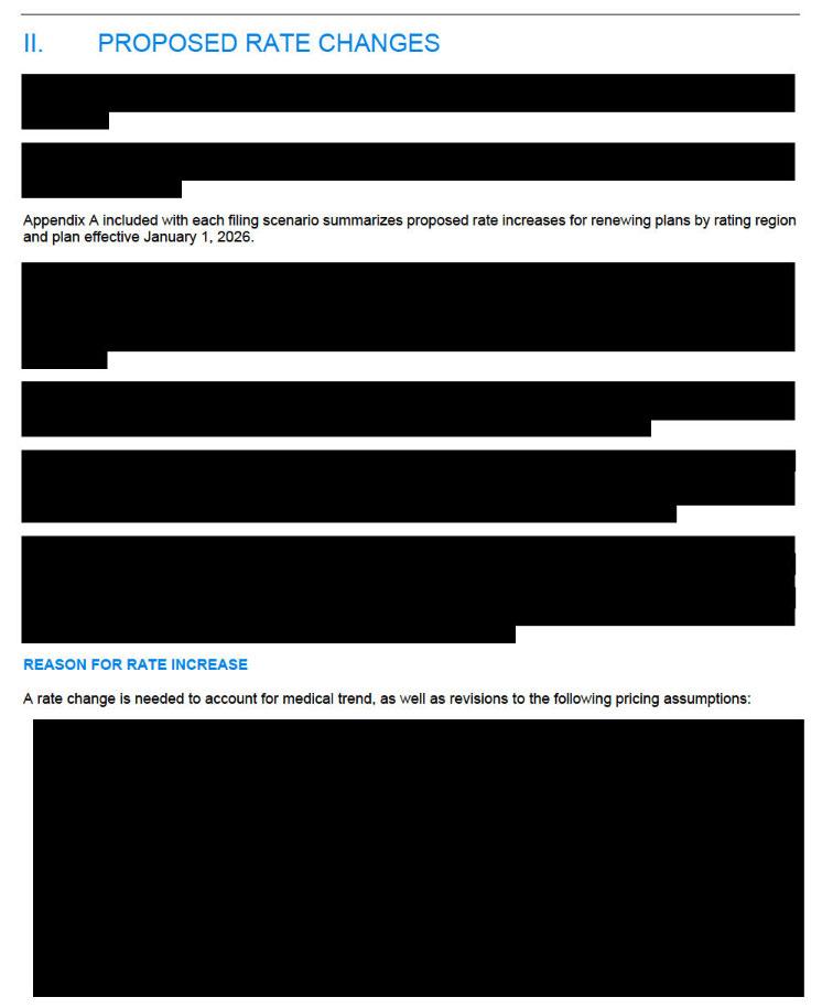 (Unfortunately, Avera hasn't provided a justification summary and has almost completely redacted their actuarial memo, making it impossible for me to know what their current enrollment is; see below)