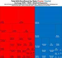 Here's the graph, which includes no further context (including any data sources...NewsWire claims it came from Reuters but I can't find the original link to a story by them with this graph) beyond making it look like a whopping 82% of ACA enrollees live in Trump states: